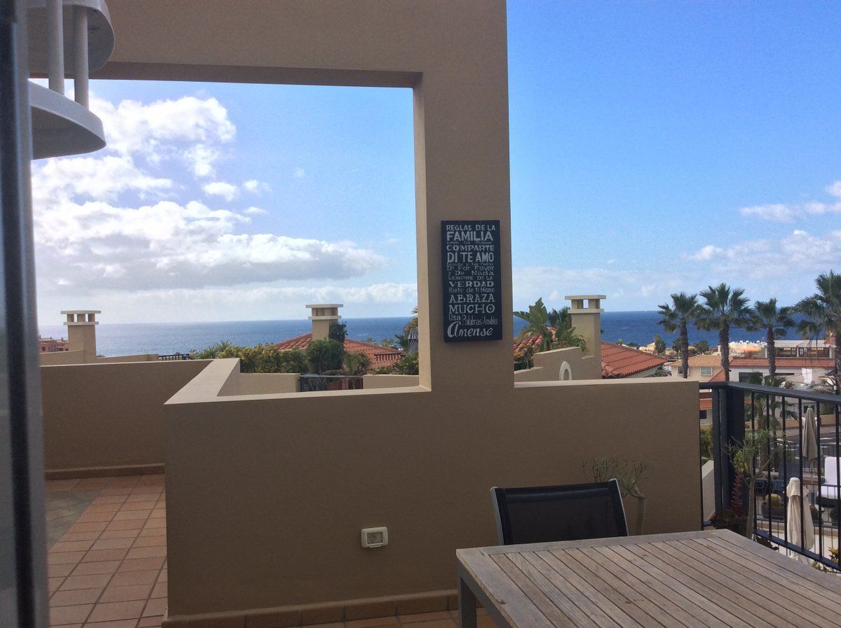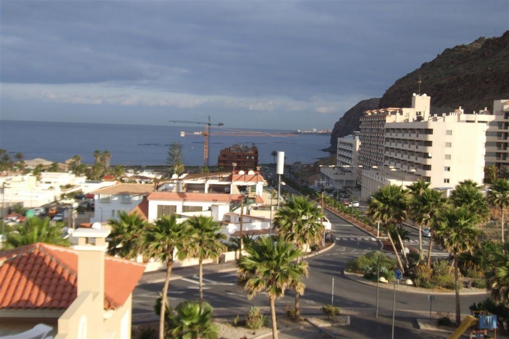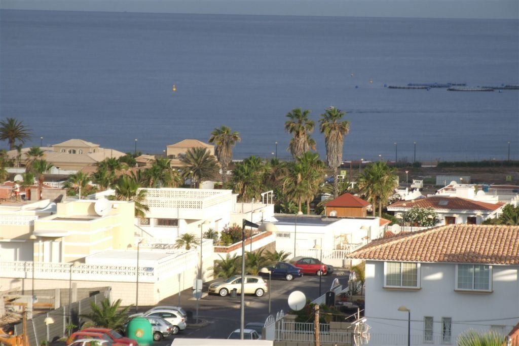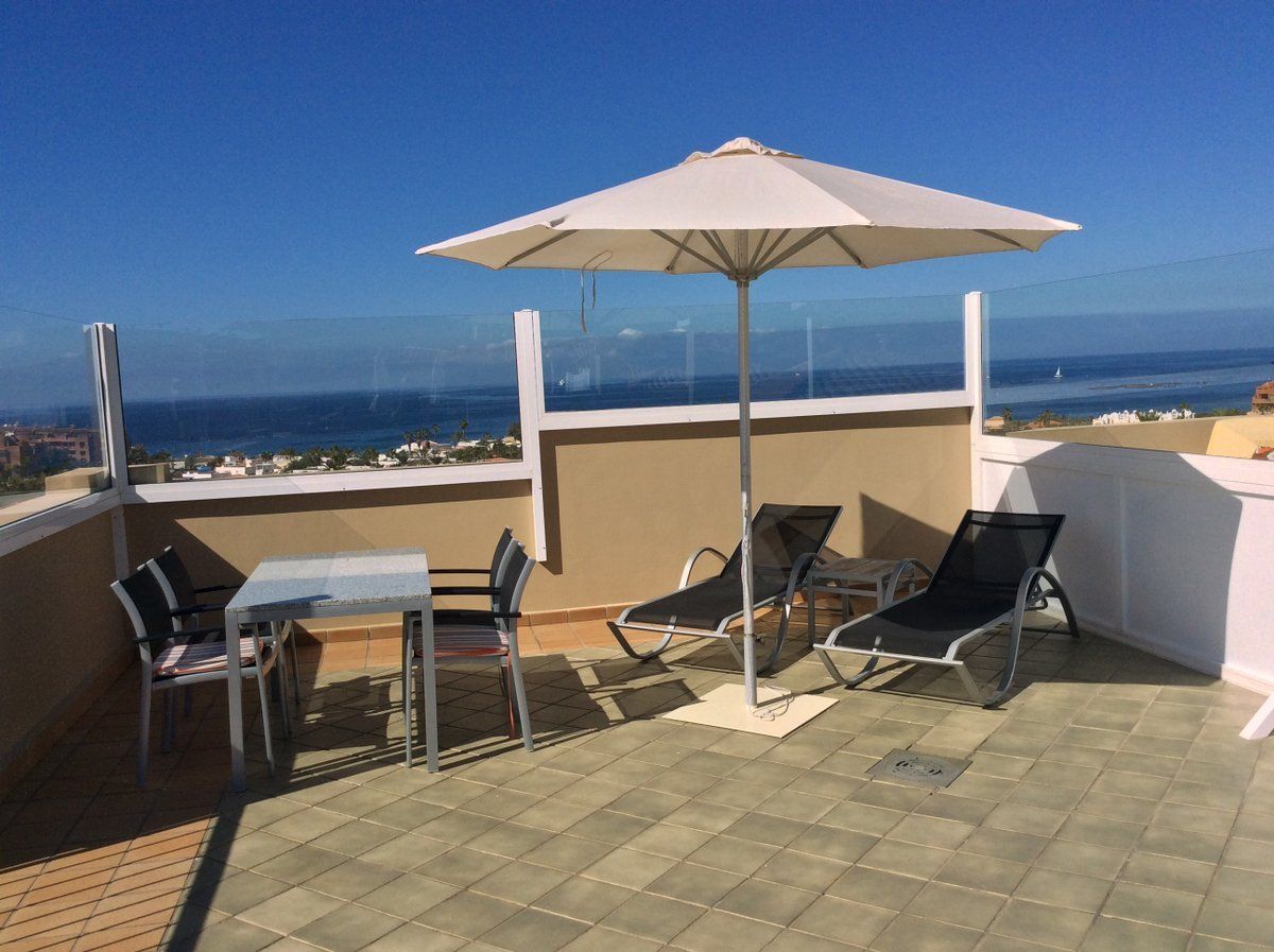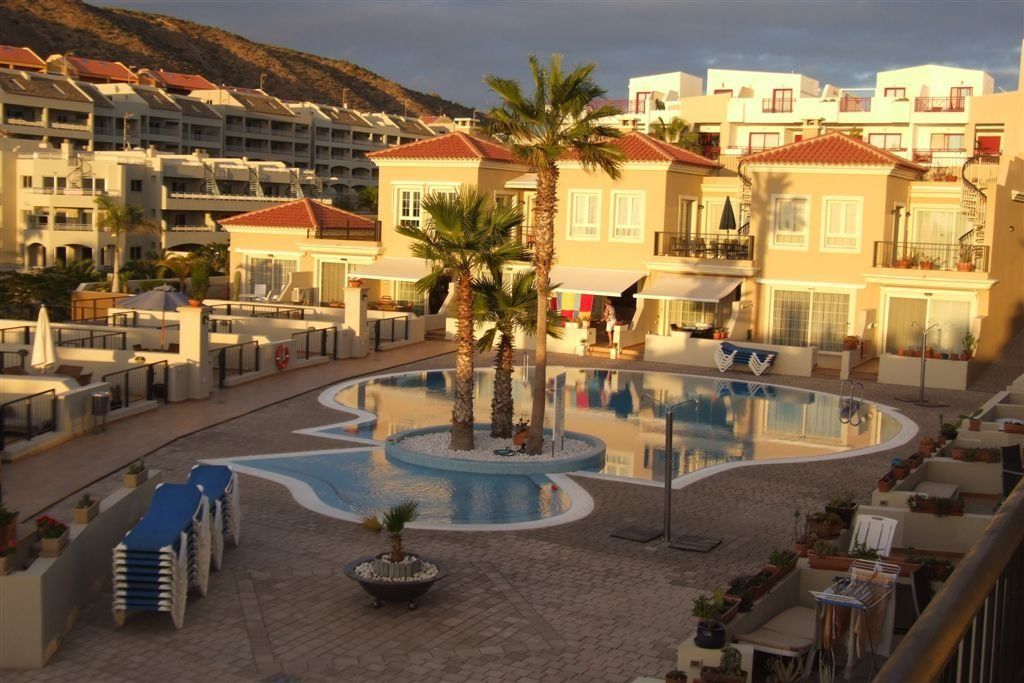 Het appartement Terrazas del Faro B21 in Palm Mar, Tenerife, ligt op een open hoek van de residentie, een niveau hoger dan het zwembad.