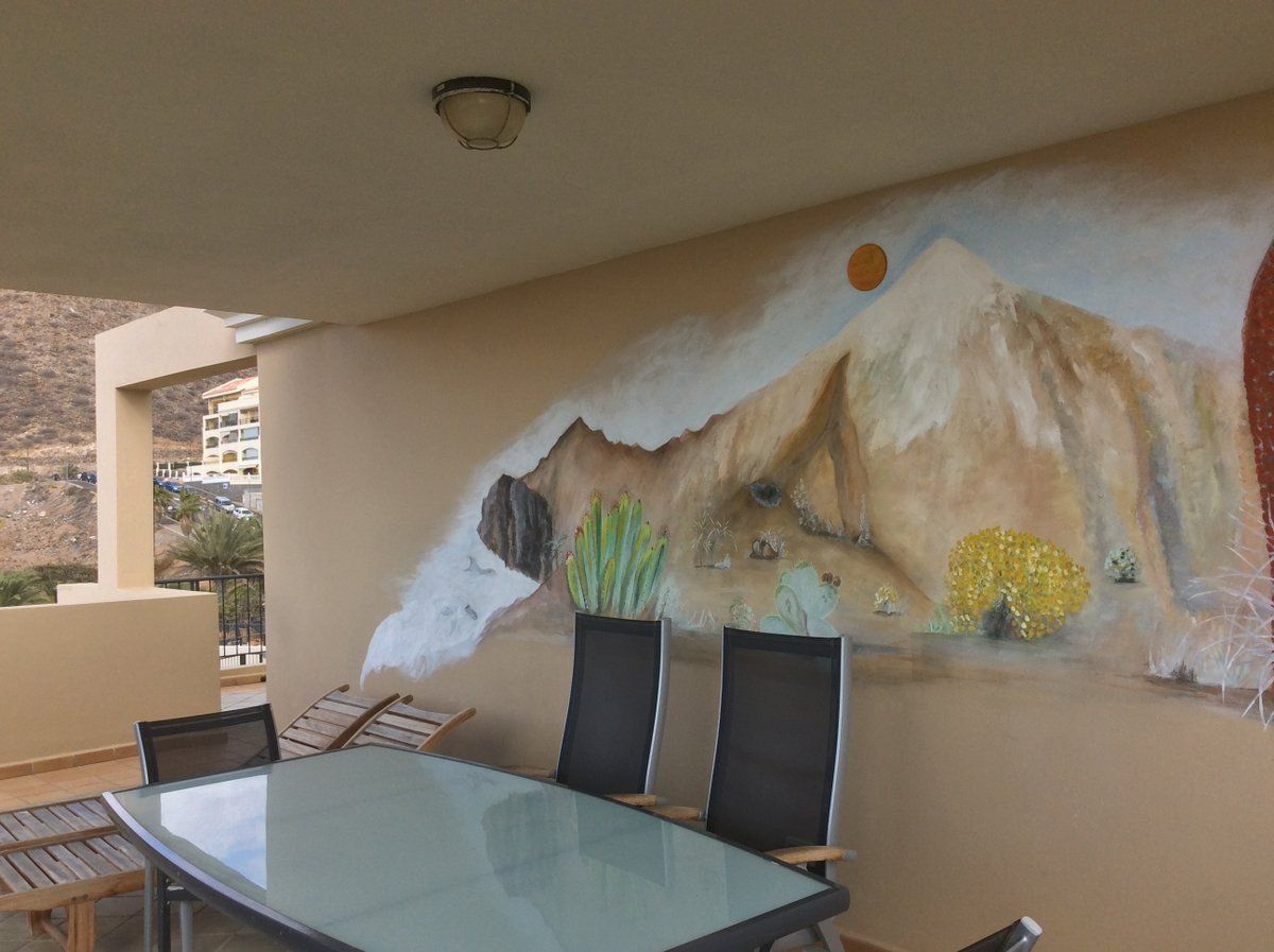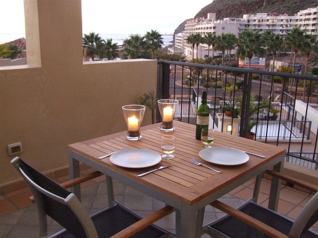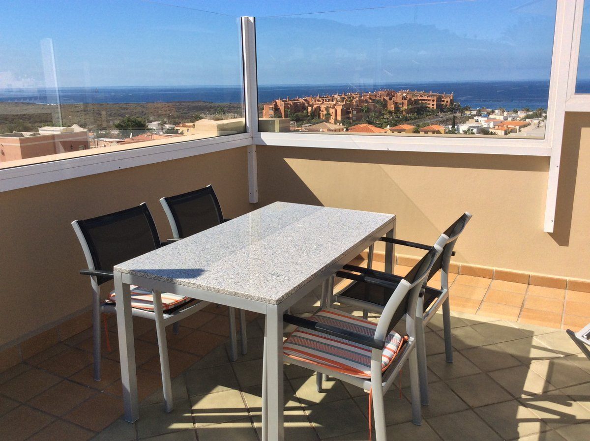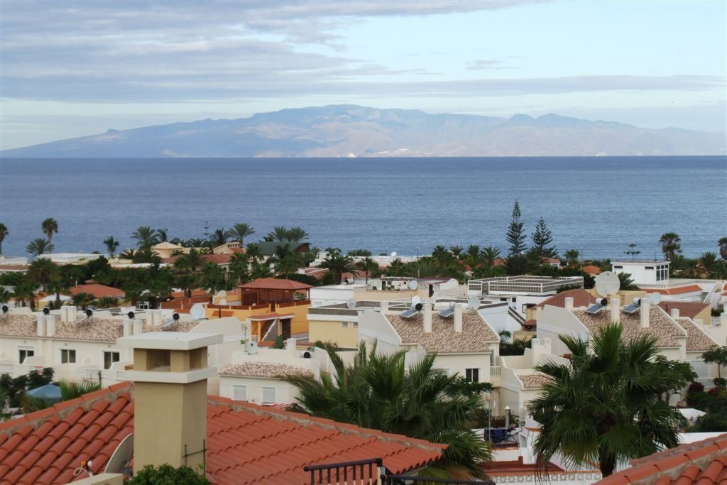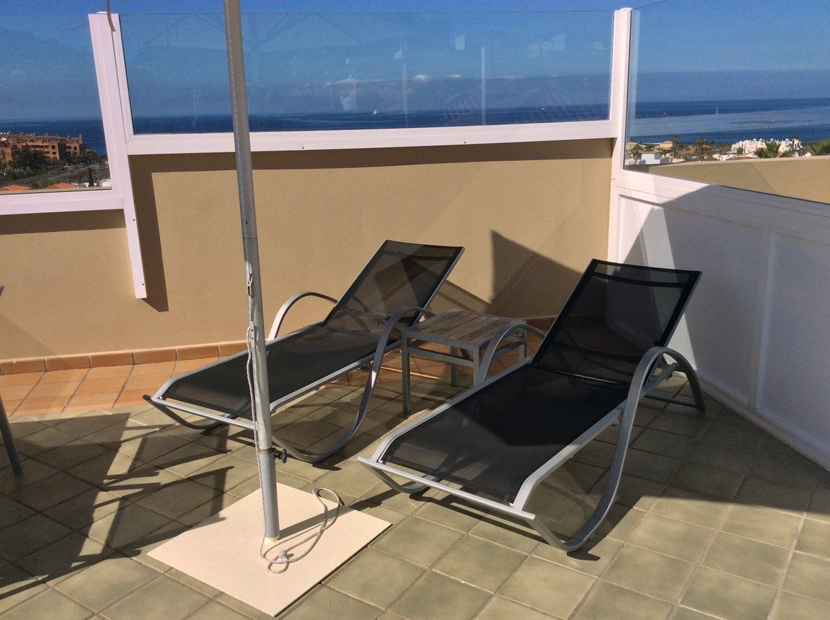 Het appartement Terrazas del Faro B21 in Palm Mar, Tenerife, ligt op een open hoek van de residentie, een niveau hoger dan het zwembad.