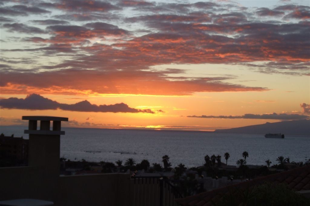 De zonsondergang achter het eiland La Gomera is onvergetelijk mooi. Bij helder weer zie je ook El Hiero en La Palma.